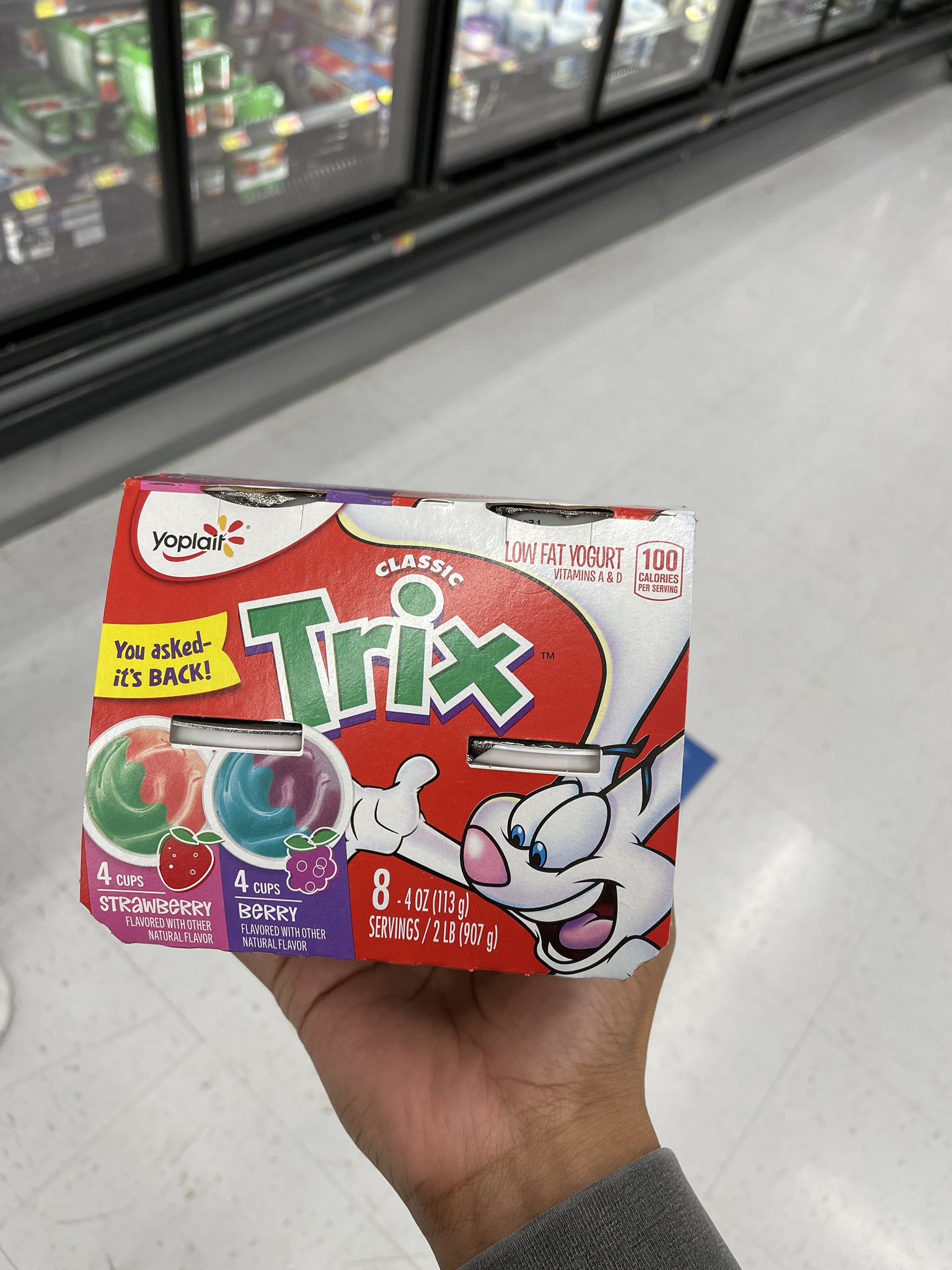 Trix Yogurt Popsicles - I Wash You Dry Use a spoon to stir in the crushed cereal, set aside. Combine the blackberries, blueberries, ½ cup of vanilla greek yogurt and 1 tbsp honey in the clean blender. Puree until smooth. Fill 6 (5oz) cups 1/3 of the way with the blueberry/blackberry mixture. Rinse the blender out and add the raspberries, yogurt and honey. PDF Trix Yogurt Yoplait® Trix Raspberry Rainbow Lowfat Yogurt 4 OZ (113g) INGREDIENTS: ... Calories 2,000 2,500 Total Fat Less Than 65g 80g Sat Fat Less Than 20g 25g Cholesterol Less Than 300mg 300mg Sodium Less Than 2,400mg 2,400mg Potassium 3,500mg 3,500mg Total Carbohydrate 300g 375g Dietary Fiber 25g 30g ... Amazon.com: Trix Yogurt 1-48 of 121 results for "trix yogurt" RESULTS. Add to List. Add to List. Share. Share. Annie's Organic Cocoa Bunnies Breakfast Cereal, 10 oz. Box. 10 Ounce (Pack of 1) 4.5 out of 5 stars 5,870. ... Calories Per Serving. 0 Calories; Up to 40 Calories; 40 to 100 Calories; 100 to 200 Calories; 200 to 300 Calories; Fat Calories Per Serving. 0 ... How Does Trix Yogurt Swirl Taste? - Facts About Food A container of yogurt can contain fortified calcium, vitamin D, and potassium. Consuming a container of Trix yogurt swirl can meet 10 percent daily recommended amounts of calcium and vitamin D. It contains 65 mg of sodium and 2.5 mg of cholesterol. It is low in fats (0.5 grams in one container). There are 3-5 grams of protein per cup.