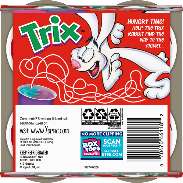 Trix yogurt calories. Yoplait Yogurt, Low Fat, Cotton Candy - Instacart With active yogurt cultures including L. acidophilus. Silly Rabbit - Trix are for kids! Comments? Save cup, lid and call 1-800-967-5248 (M-F 7:30-5:30 CT), or visit website: . Live & Active Cultures: Meets National Yogurt Association criteria for live and active culture yogurt. Diet Exchanges: 1/2 skim milk, 1 carbohydrate. Nutritional Information for Yoplait Light Yogurt | Healthfully Made with nonfat milk, each Yoplait Light yogurt offers 16 grams of carbohydrates, 5 grams of protein and zero grams of fat per serving. As a healthy snack, low-fat yogurt paired with fresh fruit is a good choice if you are looking for something sweet without all of the added fat. If you want more protein, consider mixing protein powder in with ... Calories in Trix Yogurt - Calorie, Fat, Carb, Fiber, & Protein Info Calories in Trix Yogurt based on the calories, fat, protein, carbs and other nutrition information submitted for Trix Yogurt. TRIX YOGURT RECIPES All You Need is Food - Stevehacks how many calories are in yoplait trix strawberry kiwi yogurt Nutritional Value and Information. How many calories are in 1 serving? 100 calories (0 kilojoules) are in 4 oz - it has an equal quantity of calories as 0.77 container icelandic style skyr non-fat yogurt (acai), 2.0 piece light string cheese, and 18.87 Tbsp milk.